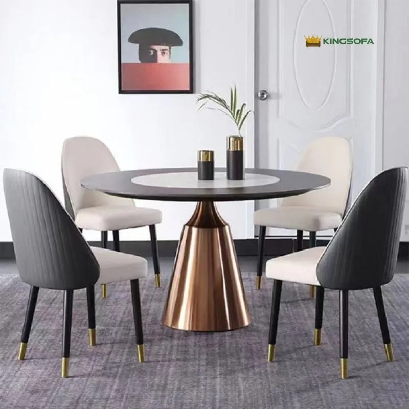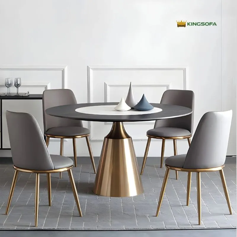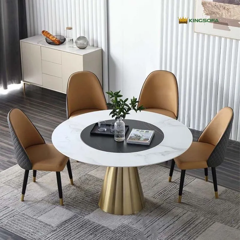 Điểm nhấn đầu tiên của Bàn Tròn Xoay Mặt Đá Nhập Khẩu KS-BC06 chính là phần mặt bàn bằng đá phiến Ceramic cao cấp với các đường vân tự nhiên sắc sảo. Sự kết hợp giữa mâm xoay nhỏ phía trên và mặt bàn lớn phía dưới giúp việc bài trí món ăn trở nên tiện lợi và linh hoạt hơn bao giờ hết.