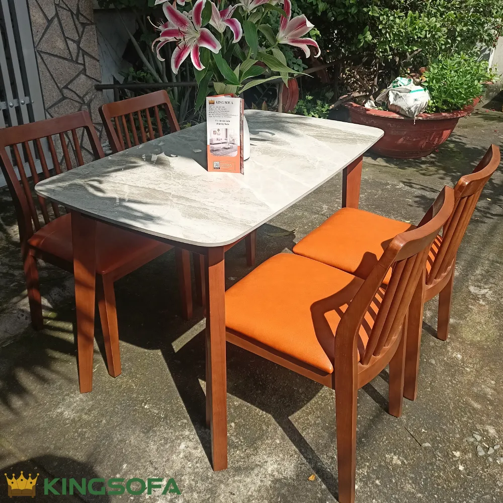 Bộ Bàn Ăn 4 Ghế Sunny KS-DL-001.02 phù hợp trong các không gian phòng ăn gia đình, nhà hàng, quán ăn….Bàn ăn làm từ chất liệu gỗ cao su tự nhiên, mặt bàn đá sở hữu màu sắc đa dạng, cùng đường vân đá đẹp mắt, khó bị trầy xước, giúp tăng thêm vẻ đẹp cho không gian ăn uống trong mỗi gia đình. Đặc biệt, với chất liệu đá cũng mang đến cho không gian vẻ đẹp trẻ trung, hiện đại hơn so với món nội thất làm từ gỗ.