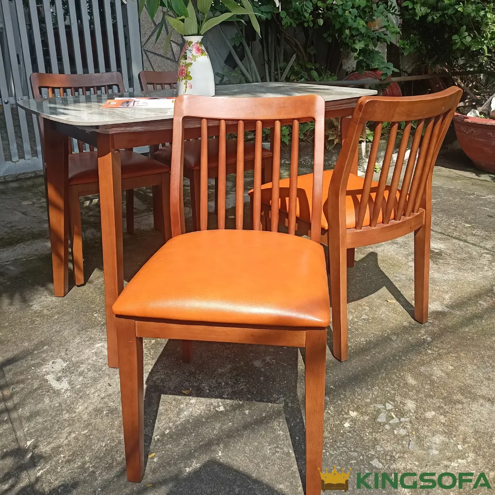 Còn ghế Sunny cũng được làm từ gỗ cao su, bọc nệm giúp người ngồi êm ái, thoải mái, dễ vệ sinh, lau chùi. Với nhiều ưu điểm vượt trội Bộ Bàn Ăn 4 Ghế Sunny KS-DL-001.02, có thiết kế đẹp mắt, dễ vệ sinh, lau chùi, bền bỉ với thời gian, đặc biệt có giá thành rẻ, nên giúp bạn có thể dễ dàng sở hữu bộ bàn ăn gỗ rẻ đẹp này. Sản phẩm có tính ứng dụng cao, có thể đặt bộ bàn ăn ghế gỗ này trong không gian phòng ăn gia đình, nhà hàng và các quán ăn.