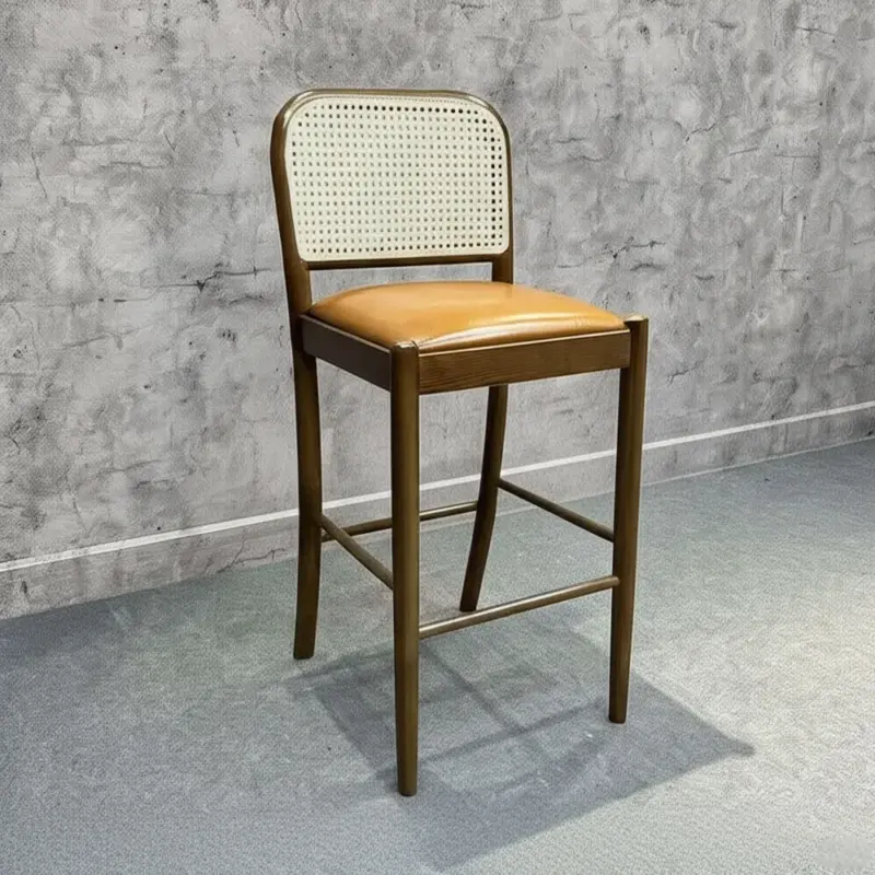 - Chất liệu: Khung gỗ tần bì, mặt ngồi bọc nệm êm ái, tựa lưng đan mây.