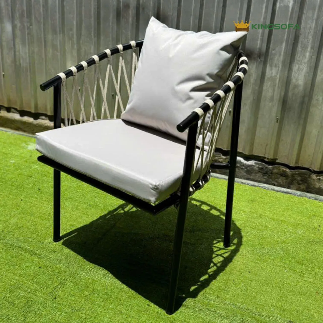 - Chất liệu ghế: Khung sắt sơn tĩnh điện, đan dây dù kèm nệm.